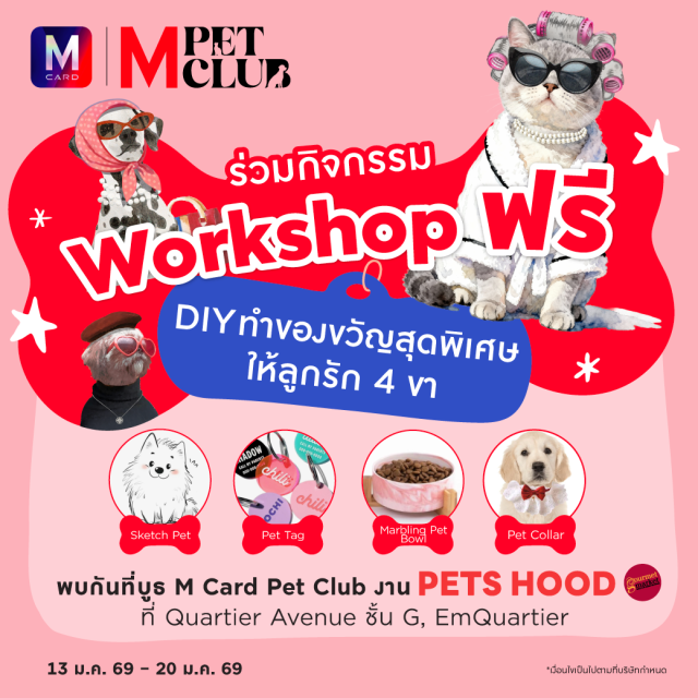 - หรือสมัครสมาชิก M Card Pet Club ภายในงาน รับสิทธิ์ Workshop ฟรีทันที พร้อมรับ Welcome E-Coupon มูลค่า 100 บาท