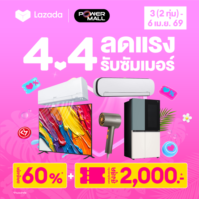 เริ่มแล้ว! 4.4 Power Mall ลดแรง รับซัมเมอร์ บน Lazada