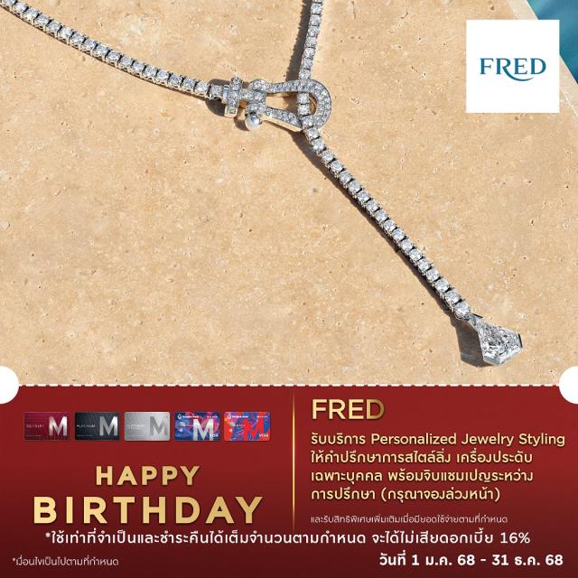 รับบริการ Personalized Jewelry Styling ให้คำปรึกษาการสไตล์ลิ่งเครื่องประดับเฉพาะบุคคล พร้อมจิบแชมเปญระหว่างการปรึกษา (กรุณาจองล่วงหน้า) และรับสิทธิพิเศษเพิ่มเติมเมื่อมียอดใช้จ่ายตามที่กำหนด ที่ FRED เท่านั้น