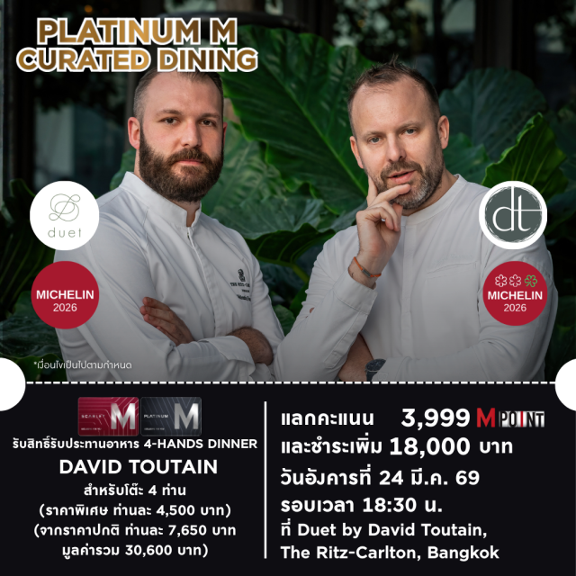 - สิทธิพิเศษสำหรับสมาชิก Scarlet M Card และ Platinum M Card เท่านั้น