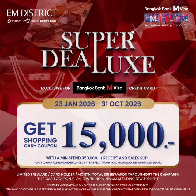 - คูปองแทนเงินสด ใช้ได้ที่ร้านค้าที่ร่วมรายการ ภายในศูนย์การค้า เอ็มโพเรียม, เอ็มควอเทียร์ และ เอ็มสเฟียร์ เท่านั้น ไม่สามารถเปลี่ยนแปลง แลกคืน หรือทอนเป็นเงินสด หรือผลประโยชน์อื่นใดได้