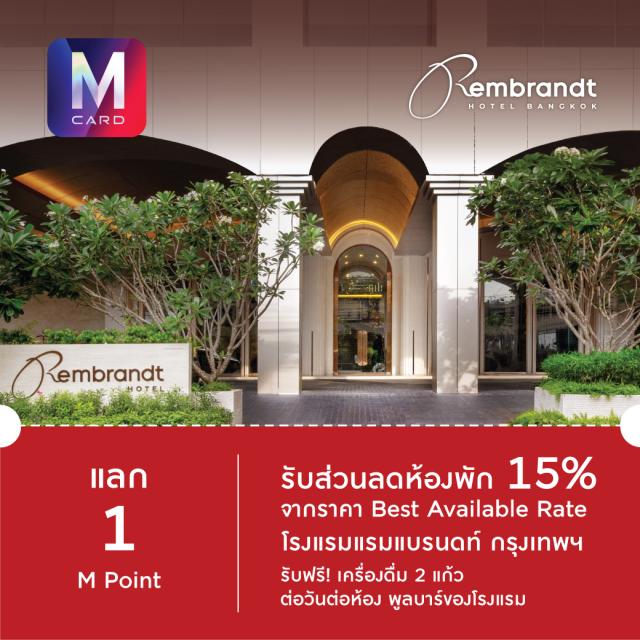สมาชิก M Card แลก 1 M Point รับส่วนลด 15% Best Available Rate เมื่อจองห้องพักที่ โรงแรมแรมแบรนทด์ กรุงเทพฯ