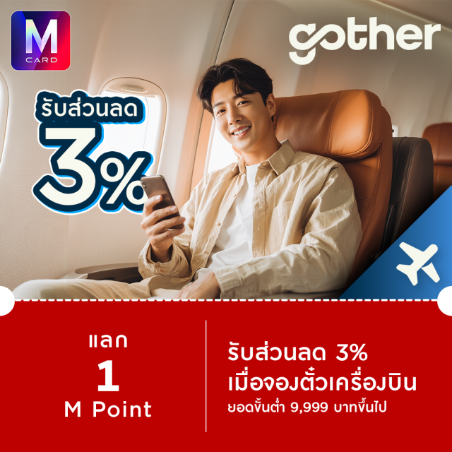 แลก 1 M Point รับส่วนลด 3% เมื่อจองตั๋วเครื่องบินยอดขั้นต่ำ 9,999...