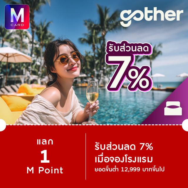 แลก 1 M Point รับส่วนลด 7% เมื่อจองโรงแรมยอดขั้นต่ำ 12,999 บาทขึ้...