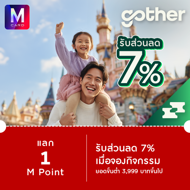 แลก 1 M Point รับส่วนลด 7% เมื่อจองกิจกรรมยอดขั้นต่ำ 3,999 บาทขึ้...