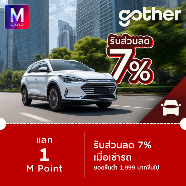แลก 1 M Point รับส่วนลด 7% เมื่อเช่ารถยอดขั้นต่ำ 1,999 บาทขึ้นไปก...