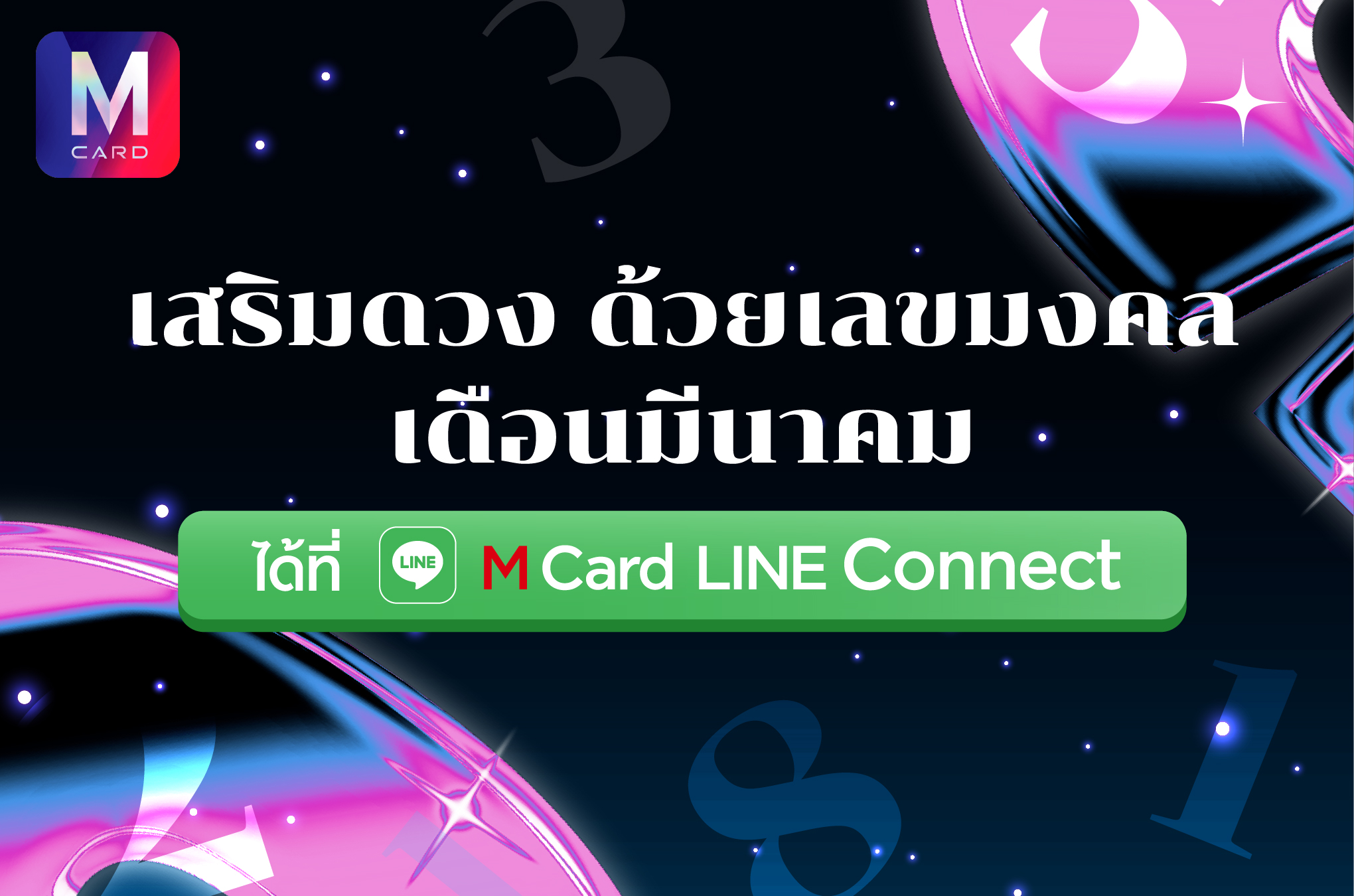 แจกฟรี! เลขมงคลเสริมเฮงช่วงเทศกาล เมื่อเชื่อมต่อ LINE กับ M Card แอดเลย >> LINE M CARD