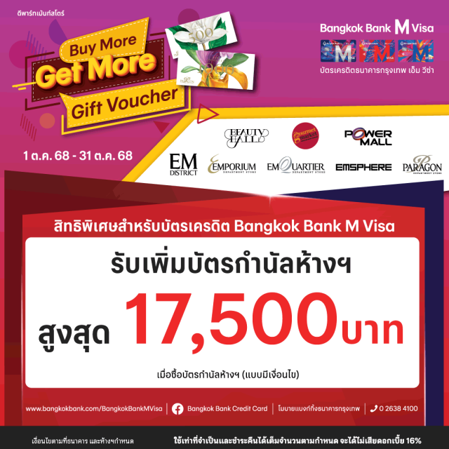 ซื้อบัตรกำนัลห้างฯ รับบัตรกำนัลห้างฯ เพิ่มสูงสุด 17,500 บาท*