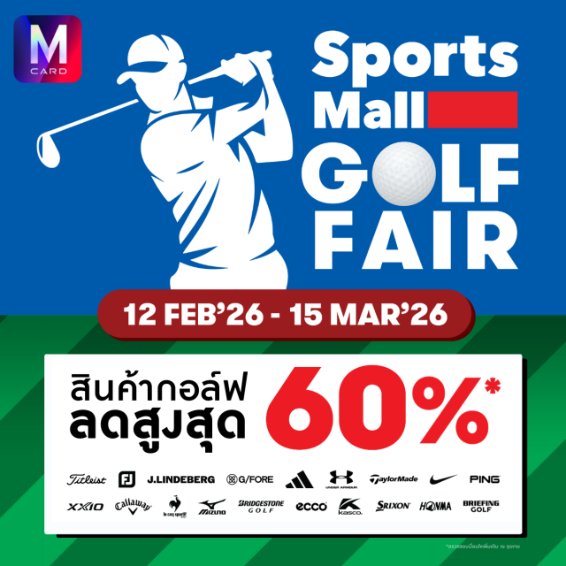 • สิทธิพิเศษสำหรับสมาชิก M CARD แลก 1,500 M POINT รับส่วนลด 1,000 บาท เมื่อซื้อสินค้าภายในแคมเปญ SportsMall Golf Fair ตั้งแต่ 10,000 บาทขึ้นไป/ใบเสร็จ จำนวน 50 สิทธิ์ตลอดรายการ กดรับสิทธิ์ผ่าน M Card Application จำกัด 1 ท่าน / 1 สิทธิ์ / ตลอดรายการ (เฉพาะวันที่ 8 ม.ค. 2569 – 28 ก.พ. 2569)
