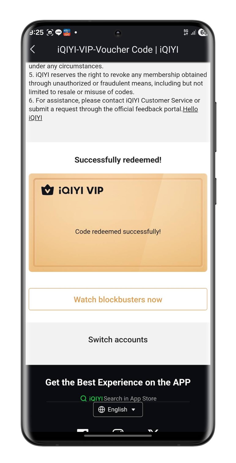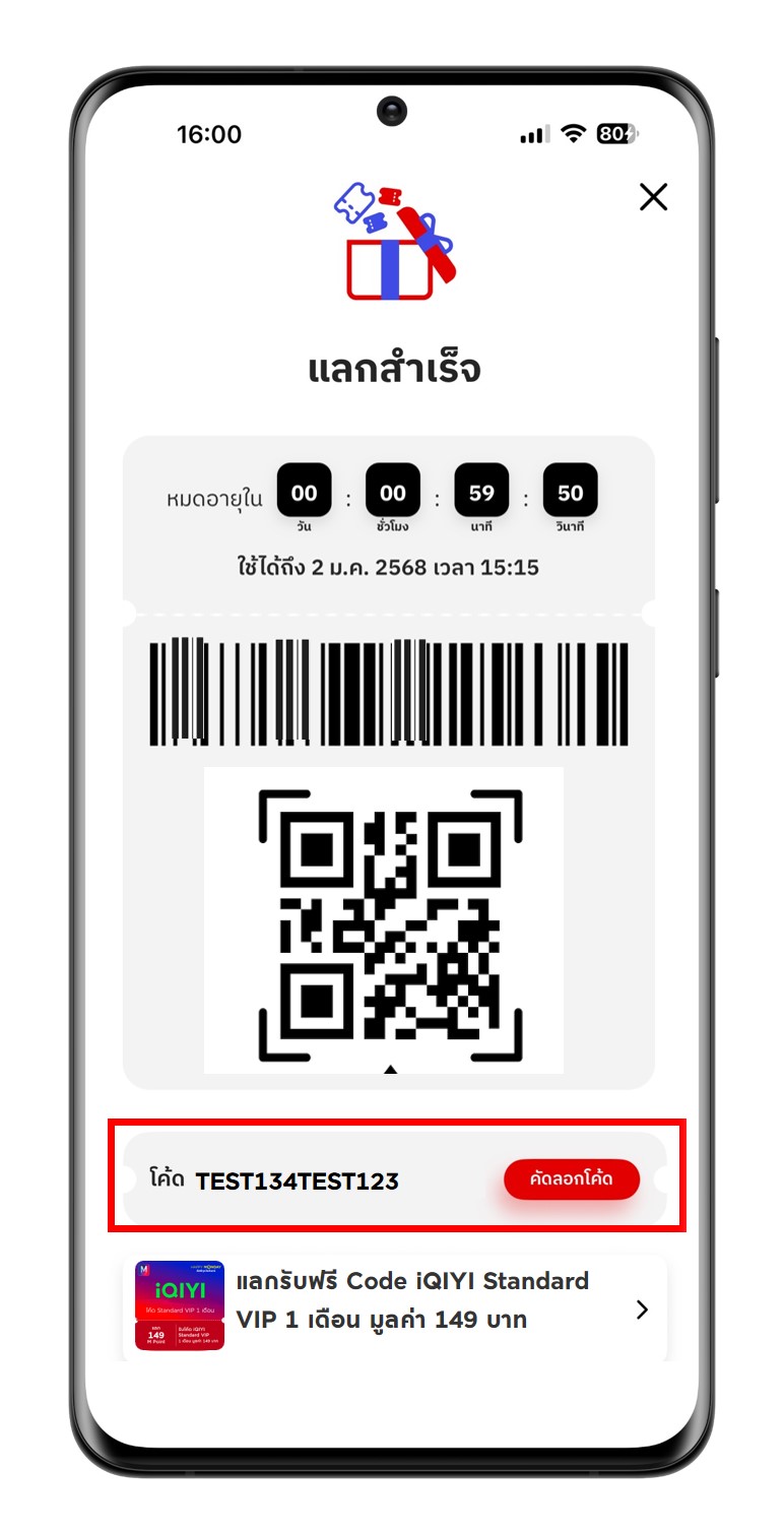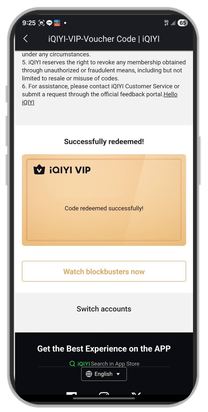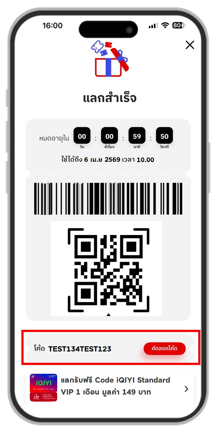 5. แลกโค้ด Code iQIYI Standard VIP สำเร็จ