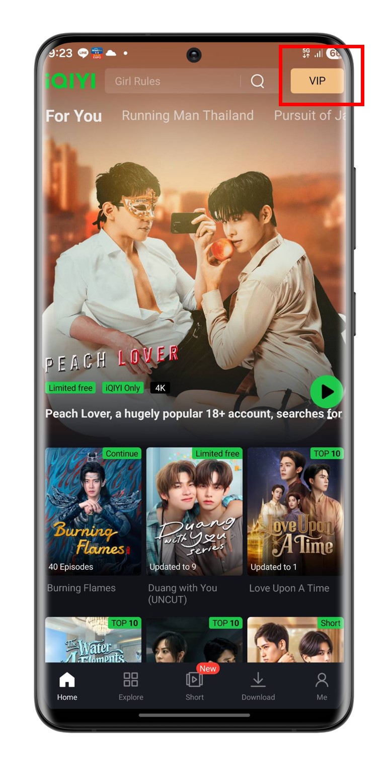 2. เปิดแอป iQIYI บนมือถือล็อกอินเพื่อเข้าสู่ระบบ หรือลงทะเบียนเพื่อสร้างบัญชีใหม่ และกด VIP ที่สีทองมุมขวาบน
