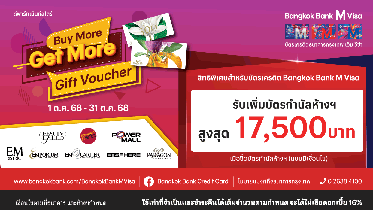 Every Fri-Sat-Sun สมาชิก M Card และบัตรเครดิต Bangkok Bank M...