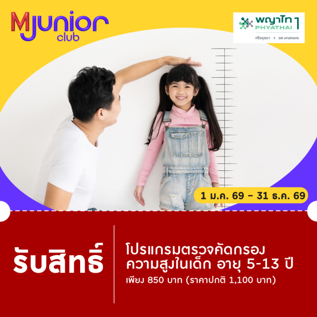 • รับบริการโปรแกรมตรวจคัดกรองความสูงในเด็ก อายุ 5-13 ปี (ตรวจอายุกระดูกด้วยเครื่องเอกซเรย์) ราคา 850 บาท (จากราคาปกติ 1,100 บาท)
