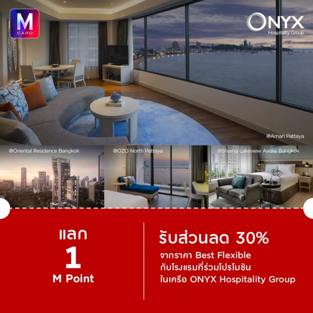 - สิทธิพิเศษส่วนลด 30% จากราคา Flexible Rate สามารถใช้ได้เฉพาะที่โรงแรมในเครือ ONYX Hospitality Group ที่ร่วมรายการ