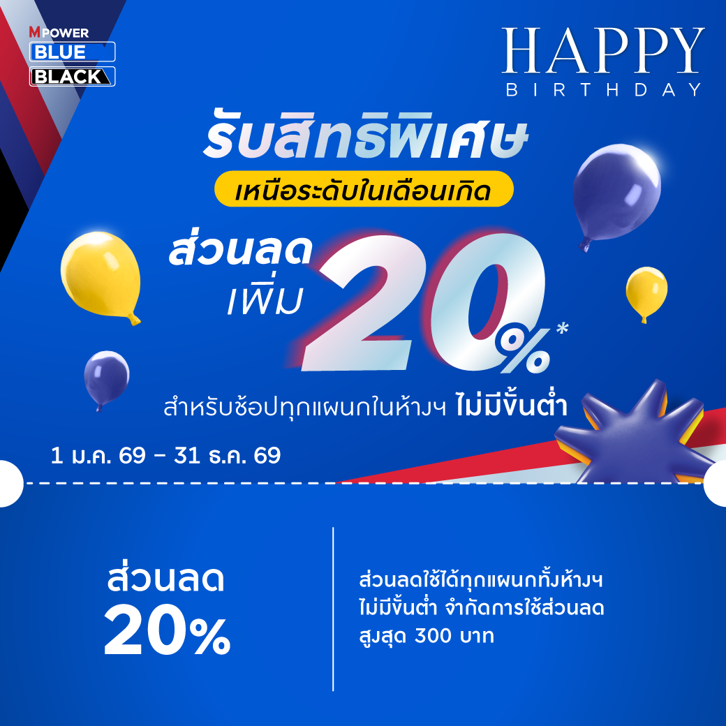 - คำนวณจากการช้อปผ่านหมายเลขสมาชิกบัตร M Card เฉพาะการซื้อสินค้าในห้างฯ ทุกแผนก หรือยอดใช้จ่ายจากร้านค้าที่ร่วมรายการ / พาวเวอร์มอลล์ /กูร์เมต์ มาร์เก็ต หรือโฮม เฟรช มาร์ท ในเครือเดอะมอลล์ กรุ๊ป ทุกสาขา โดยคำนวณจากยอดซื้อสินค้าหลังจากหักส่วนลดต่างๆ