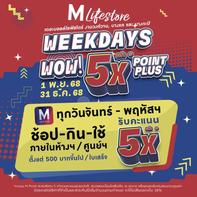 • *คะแนน M POINT สะสมพิเศษ 5 เท่า รวมคะแนนสะสมปกติ