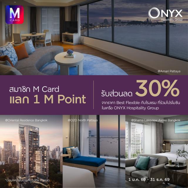 แลก 1 M Point รับส่วนลดค่าห้องพัก 30% จากราคา Best Flexible Rate เมื่อจองห้องพักผ่านเว็บไซต์