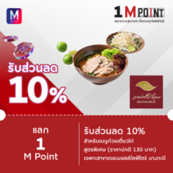 7. แม่ศรีเรือน : แลก 1 M Point รับส่วนลด 10% สำหรับเมนูก๋วยเตี๋ยวไก่สูตรพิเศษ (ราคาปกติ 130 บาท) ที่ แม่ศรีเรือน เฉพาะสาขาเดอะมอลล์ไลฟ์โตร์ บางกะปิ คลิก