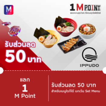 5. IPPUDO : แลก 1 M Point รับส่วนลด 50 บาท สำหรับเมนูใดก็ได้ ยกเว้น Set Menu ที่ IPPUDO เฉพาะสาขาที่ร่วมรายการ คลิก