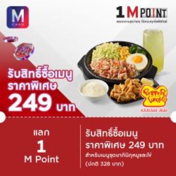 4. Pepper Lunch : แลก 1 M Point รับสิทธิ์ซื้อเมนูราคาพิเศษลด 20% ชุดยากินิกุหมูและไข่ (เสิร์ฟพร้อมข้าวญี่ปุ่น) + หนังไก่กรอบ + ชาเขียวเย็น 16 ออนซ์ ราคาพิเศษเพียง 249 บาท (จากปกติ 328 บาท) ที่ Pepper Lunch เฉพาะสาขาที่ร่วมรายการ คลิก