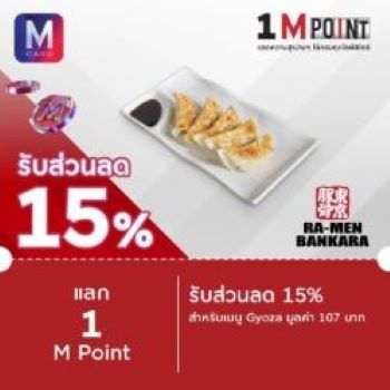 1. Bankara Ramen : แลก 1 M Point รับส่วนลด Gyoza 15% ที่ Bankara Ramen เฉพาะสาขาสยามพารากอน คลิก