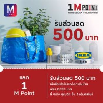 4. IKEA : สมาชิก M Card ที่มีสมาชิก IKEA Family แลก 1 M Point รับส่วนลด 500 บาท เมื่อซื้อเฟอร์นิเจอร์ตกแต่งบ้านครบ 2,000 บาท คลิก