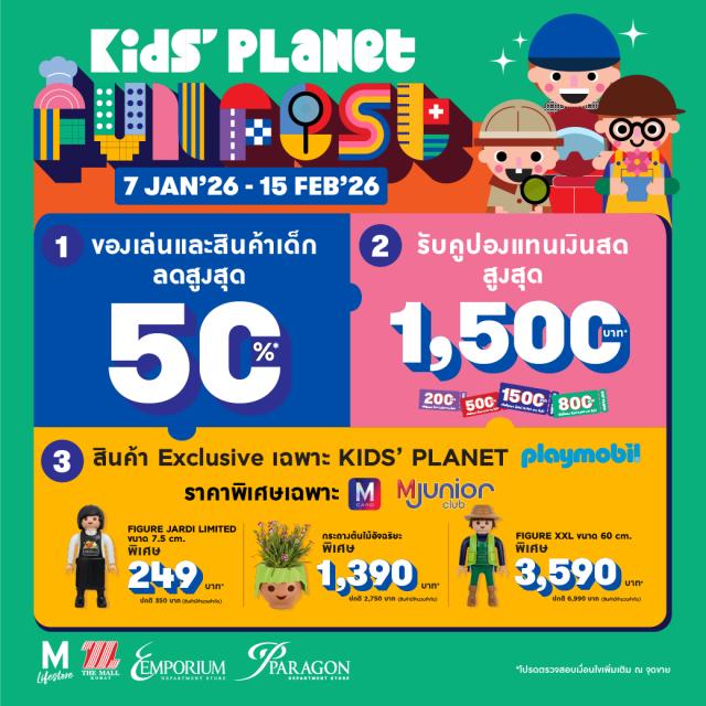 - สิทธิพิเศษสำหรับ สมาชิก M Card ที่มียอดซื้อในแผนก Kids’ Planet สะสม สูงสุดตลอดรายการ ตั้งแต่ 80,000 บาท ขึ้นไป ตลอดรายการ รับฟรี! ของรางวัลจากแบรนด์ดัง อาทิ Hatchimals Alive, Lego, Majorette, Playmobil, Tookytoy มูลค่า 40,000 บาท จำนวน 6 รางวัล*